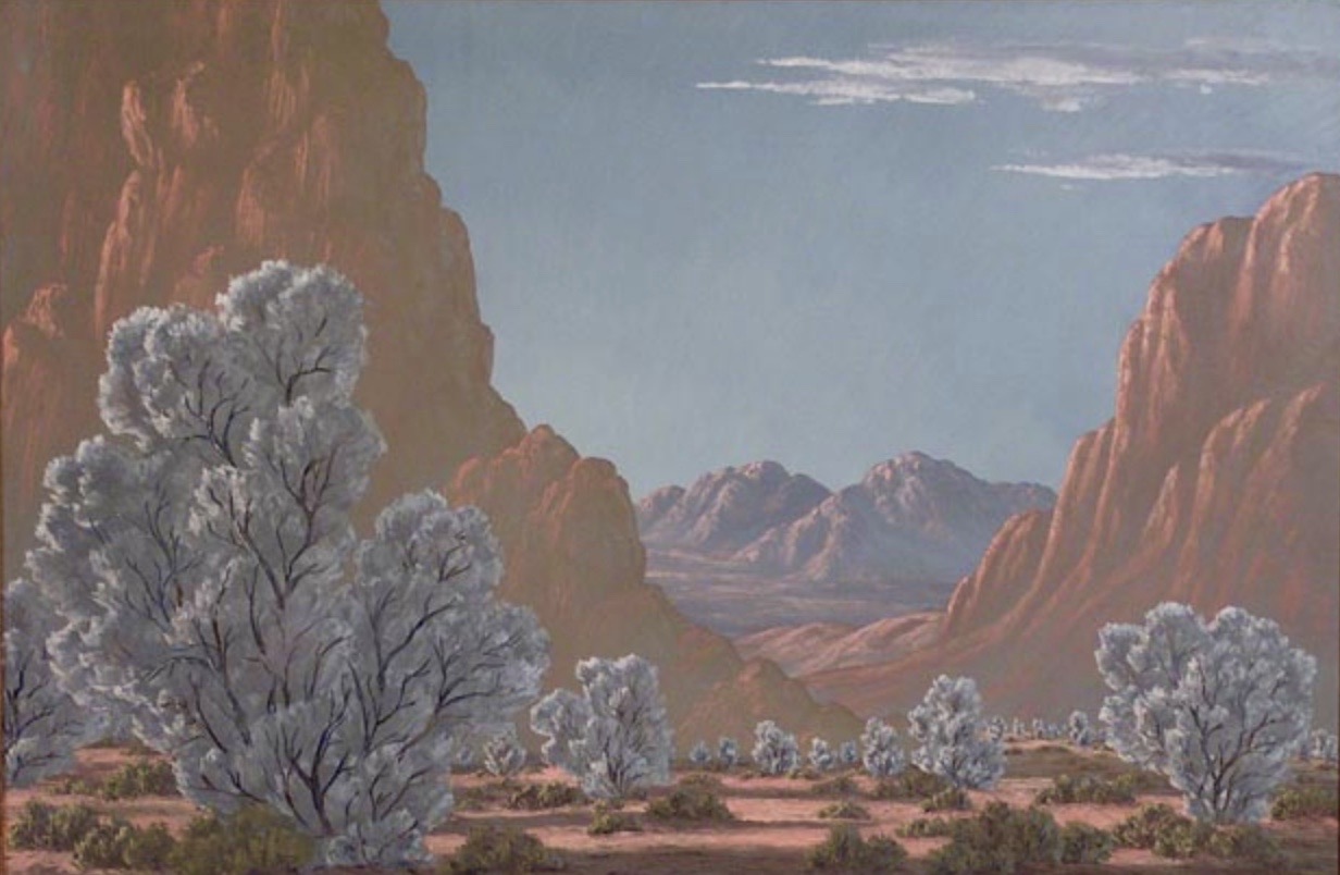 This sometimes-difficult dad also happens to be the best-known of the desert artists, not just for his paintings but also for his shtick. Hilton’s early years spent in China with missionary parents infused him with a love of the exotic, and he later mined the themes of old souls, reincarnation, and the occult to win audiences.
