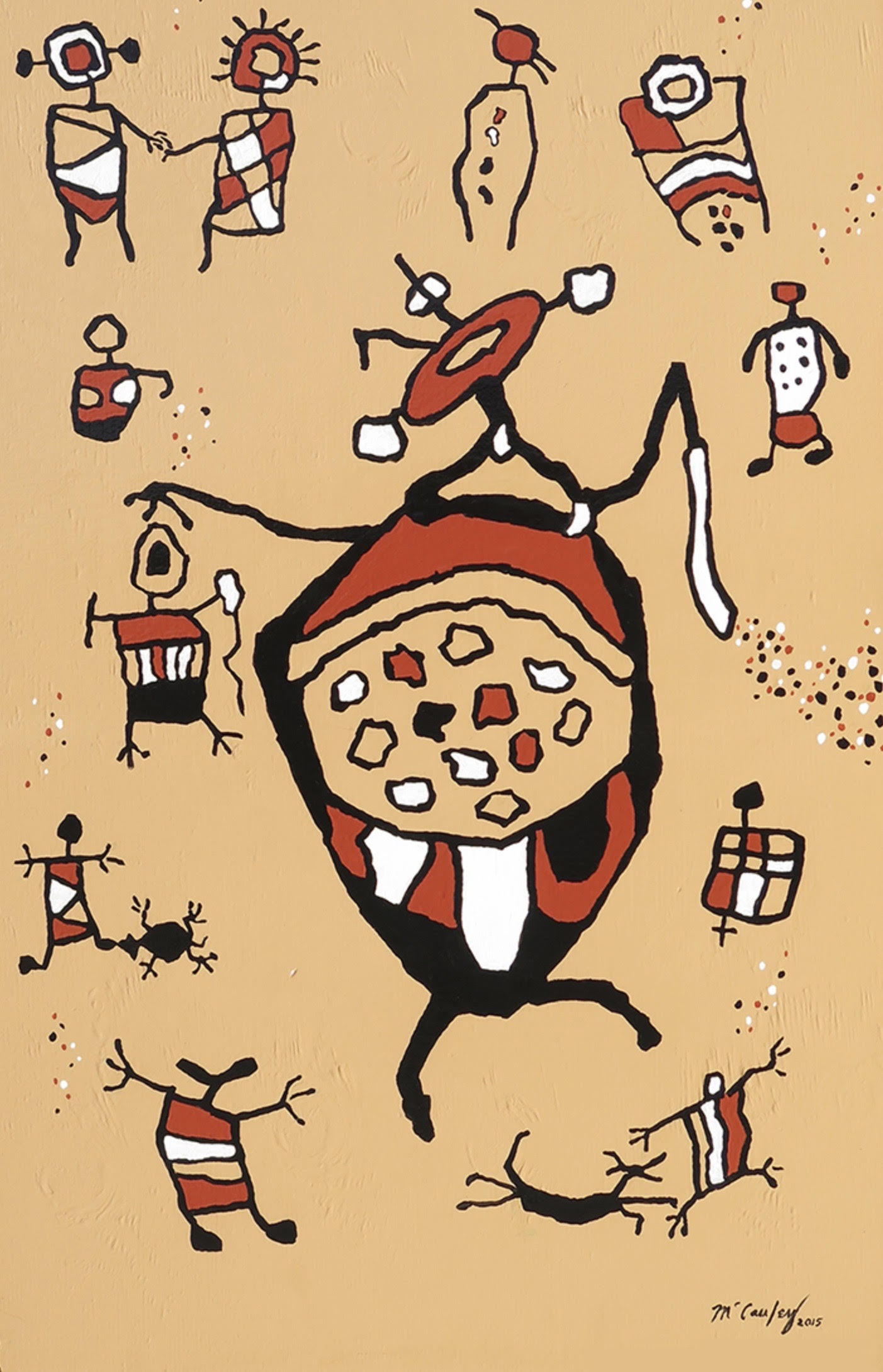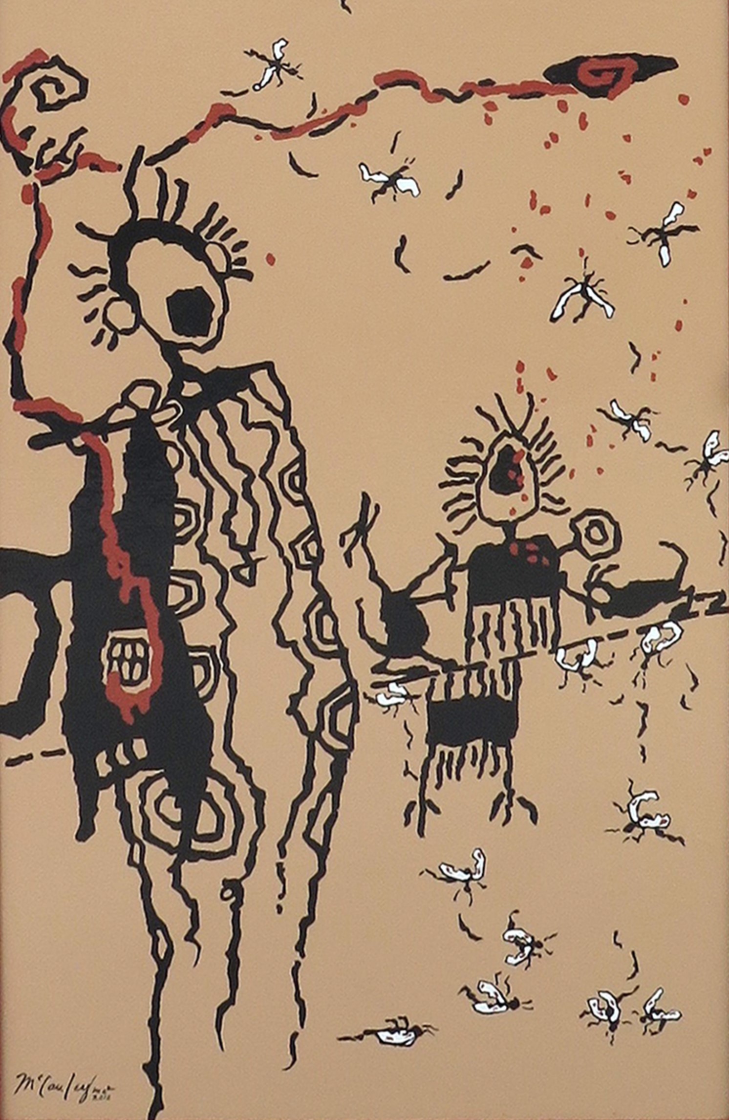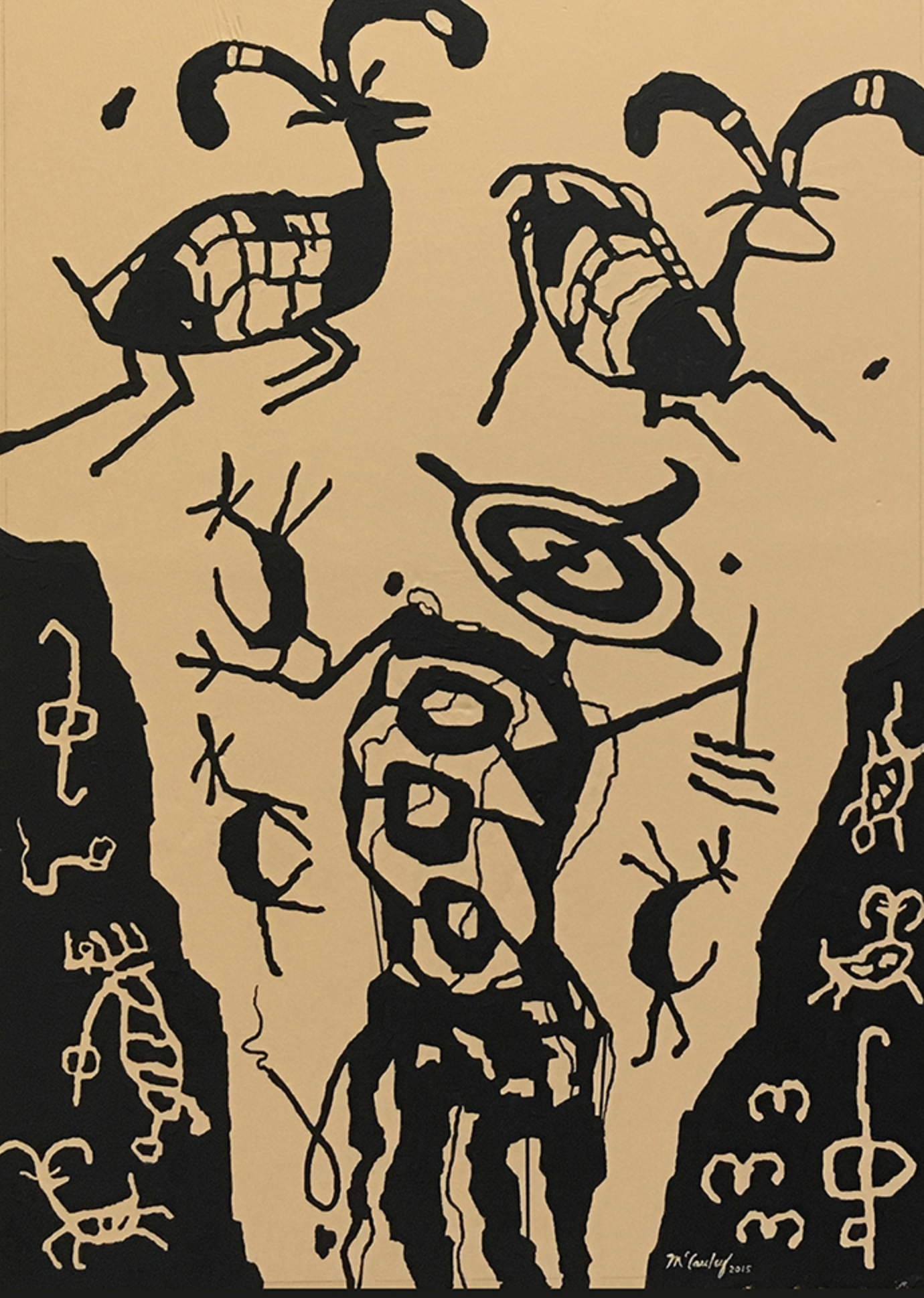 Don McCauley worked as a physicist at China Lake Naval Air Weapons Station and took up painting as a second career in 1975. In 2015, the Ridgecrest resident was enlisted to paint petroglyph images from the nearby Coso rock art site on service boxes to welcome visitors to town. (He was assisted by his wife, Judy.) The art was shown at Maturango Museum in an exhibition called Coso Rock Art Expressions. https://cosorockartexpressions.com