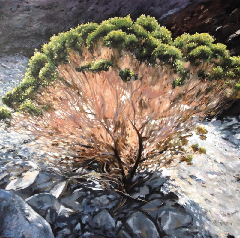 I’m enjoying the group shows and building my resume but I’m thrilled to have a solo show this summer at the Maturango Museum. I’ll admit I’m more into the creative aspects of being an artist and less into the marketing. That’s a full time job in and of itself. Ultimately I want to thrive and grow as an artist and I’d love it if my desert landscapes find themselves in galleries and people’s homes. I continue to explore themes around light and shadow, a playful use of color and a dance with the contrast between abstraction and realism. I’m a big fan of persistence and I hope that my continued dedication to desert landscapes leads to a body of work I can be proud of. It’s a humbling process, making it up as I go and fumbling along the way, learning from mistakes, exploring and figuring out what works. But that sums up what being an artist is about to me. Spending time exploring and creating work about the desert is as perfect as it gets.