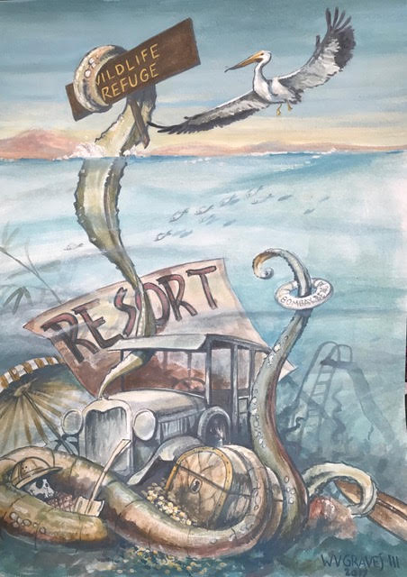 With so many international artists now sampling desert themes, it’s refreshing to meet a painter who is not a tourist but is genetically rooted in this place. Via his grandparents, Warner Graves III is connected to many epochal events in the region, including the formation of the Salton Sea and the building of the All-American Canal and the Old Plank Road.