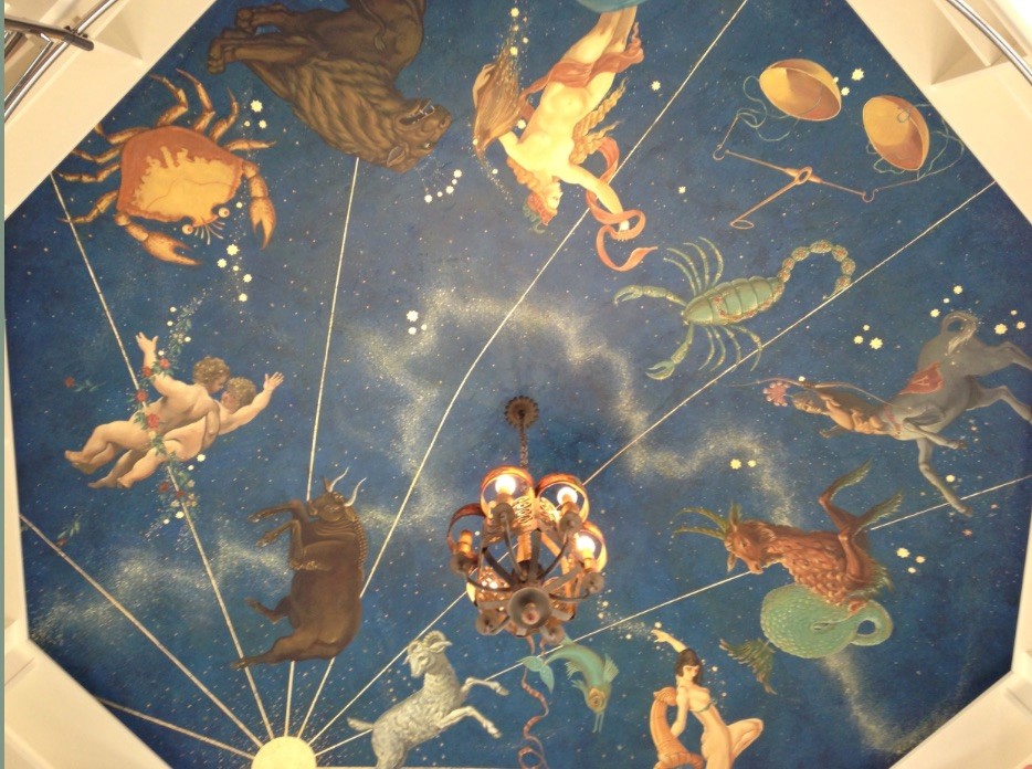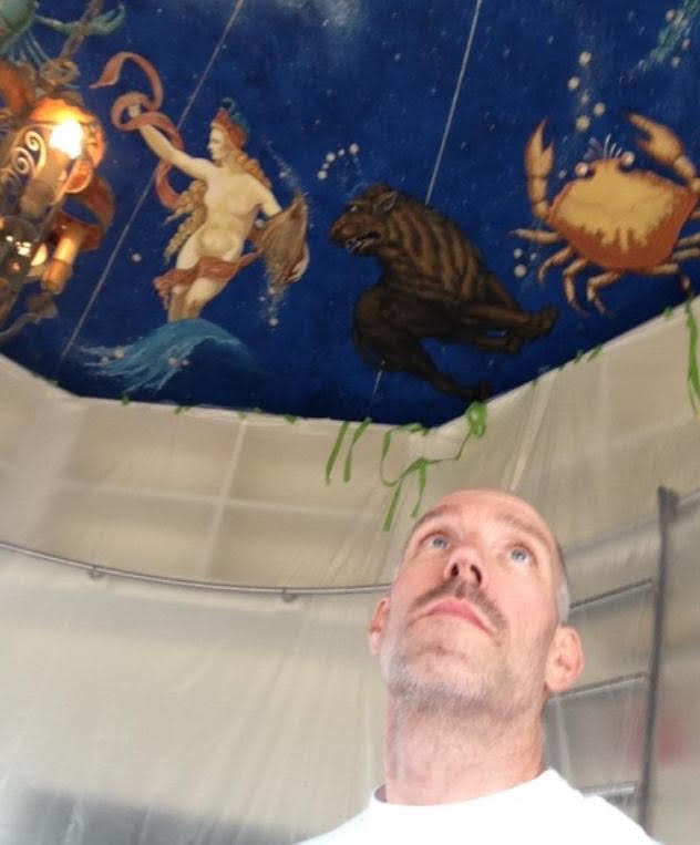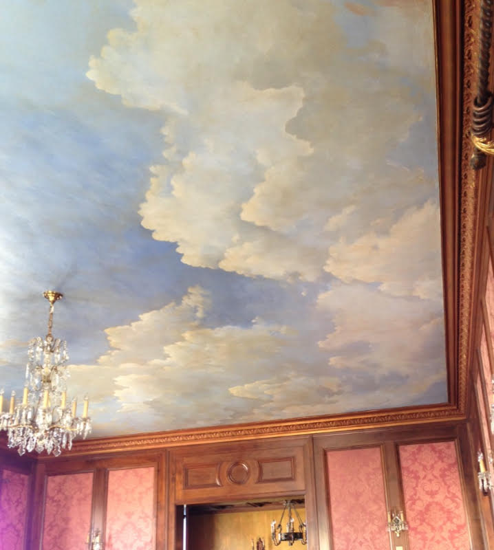 I suppose here is a good point to talk about the distinction between decorative arts and fine art. Decorative wall and ceiling murals work to be a part of the greater whole of an interior design and in a way recede into the background to bolster the feel of the room. It’s OK to hang a mirror, a painting or place a cabinet in front of the mural because the wall painting serves to magnify the feel and look of the room. In some ways it feels like site-specific installations in that the work is curated to go with what the environment calls for as opposed to being stand alone pieces. One’s artistic ego is subservient. Traditionally fine art is meant to be appreciated regardless of the environment it is placed in. Fine art is often about the individual, the ego. A lot of fine artists frown on the decorative arts as being less than art–it’s not art for art’s sake, it’s indulgent, derivative, etc…. I get all that but I think people are more open as the distinctions between artistic traditions have broken down and hopefully one can appreciate a good painting whether it’s framed or on a ceiling.