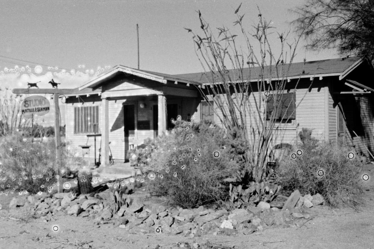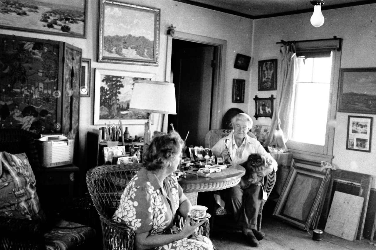 Billie Seaman, at right, in her Cathedral City studio with Catherine Ellis. The photos–complete with age spots–are from the Wilson Ellis Collection, courtesy of the Cathedral City Historical Society. The CCHS is currently working to preserve and catalogue the large collection.