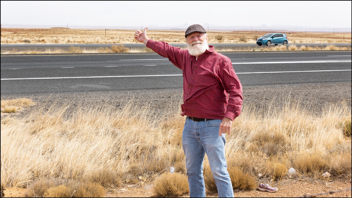 It turns out Hog Farmer Andy Romanoff, a living embodiment of the Summer of Love, had just visited the museum. Along with hitchhiking and living on a bus, his counterculture credentials include a deep acquaintance with the road-trip-as-ritual. He first traveled Route 66 as an 18-year-old and returned recently to photograph the historic road.
