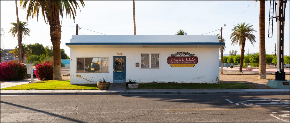 The Chamber of Commerce building has seen better times. It could use some stucco, and a coat of paint and god knows what else but I didn’t find out because it was closed. I don’t blame them, the chamber people. Needles is empty in the hot afternoon. People hide in their darkened houses, reading or watching TV till the sun goes down. There’s no reason to sit here in this office waiting while nothing happens.