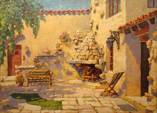 Clark had a home and studio in the complex that is now part of Colony 29, making this hillside a nexus of local art history. A friend of Guy Rose, Clark was a masterful Impressionist known for murals and desert scenes. Living here in the early 1920s, he was lulled to sleep at night by the sound of water in Tahquitz Creek. The creek has been diverted and no longer sings to artists at this location.