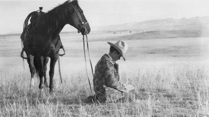 William Reynolds’ in-depth new book on artist Joe De Yong (1894-1975) illuminates the life of Charles M. Russell‘s only protégé. Cowboy illustrator and artist De Yong is linked to Coachella Valley art history. In 1934 he joined the equestrian group Ranchos Visitadores and made treks to Palm Springs, enjoying the friendship of cowboy mayor Frank Bogert. In the early 1960s, De Yong’s drawings of cowboys and outlaws graced the walls of the Desert Sun newspaper offices. The artist exhibited at the Palm Springs Desert Museum (now the art museum) and the influential Desert Southwest Gallery in Palm Desert.