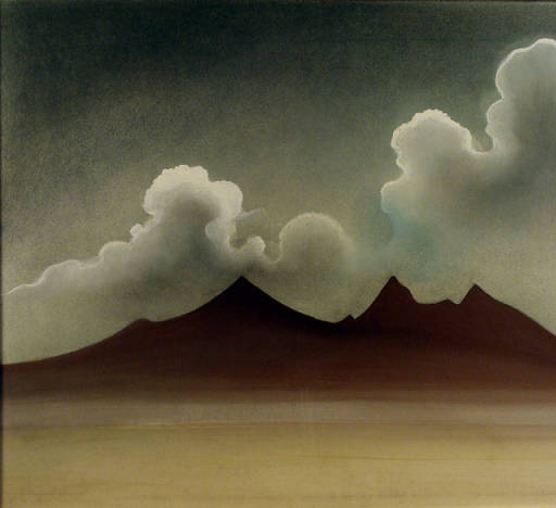 Along with his esteemed charcoal sketches of Nevada’s Indian people, made for the Federal Art Project, Caples was known for his landscapes of Pyramid Lake and the nearby mountains. “He created elegant, haunting landscapes that portrayed no place in particular but were precise distillations of the desert, mountains and dramatic atmospheric effects experienced in the desert,” wrote Marcia Cohn Growdon in the Nevada Historical Quarterly.