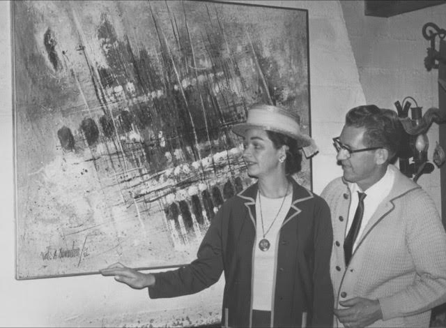 In 1960, Samuelson married Marian Gibbs. Born in Laramie, Wyoming, Marian had an art degree from the University of Wyoming and was working in Palm Springs as secretary to the late Palm Springs mayor Frank Bogert–then editor of the Villager. Pretty and assertive, Marian was an asset to Val’s social life. Samuelson was soon showing up in society photos with Jonas Salk and his wife, the painter Francoise Gilot. Collectors of his art included society names Steven Chase, Palm Desert founder Cliff Henderson, the actor David Janssen, Chester “Cactus Slim” Moorten and Charles Shelton (Desert Magazine editor).