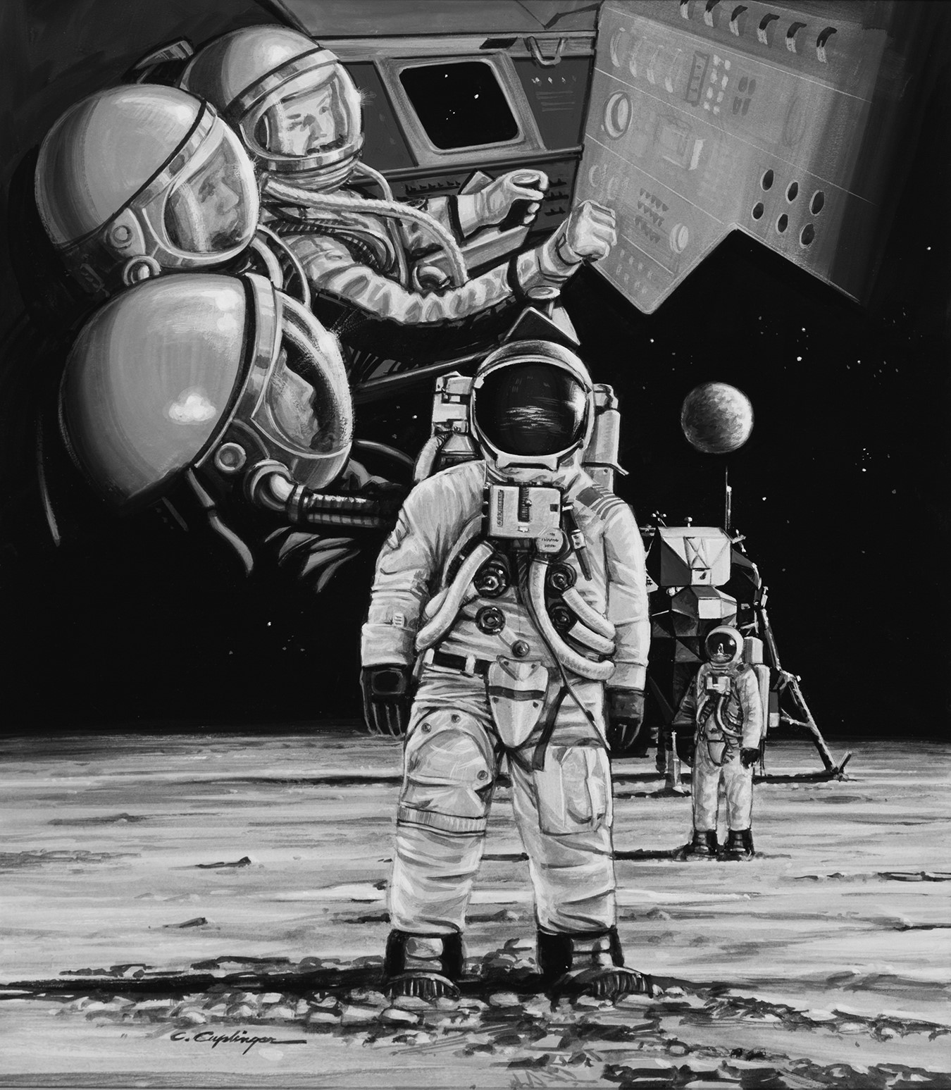 Then I recalled some old memories—“proud memories,” I said. “In the 1960s when I was an art director/illustrator at NASA’s George Marshall Space Flight Center, working for director Wernher von Braun’s lab—all those who worked there knew we were involved in something special. I feel that same pride tonight! My hat’s off to our military and to this city of brave visionaries.” Cheers went up from the audience.