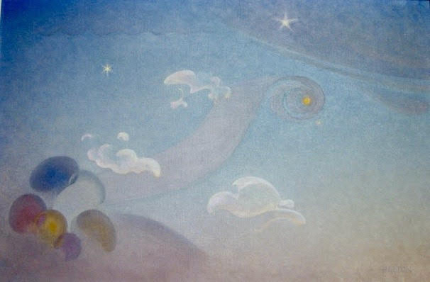 I was drawn to two intriguing paintings hanging on the wall to the left as I walked in—both by an artist named Agnes Pelton. I loved the paintings, but could barely afford one. After much dithering and indecision, I finally purchased the piece called “Voyage.” I liked the painting’s sweeping movement, the sense of ascendancy to the heavens. I paid $200.
