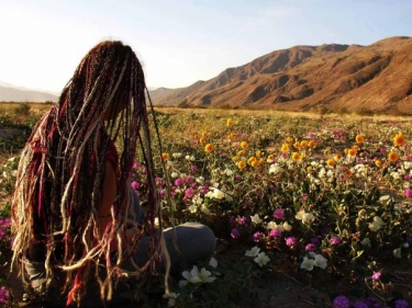 Anza-Borrego is famous for its wildflowers, of course, and desert flowers are inextricably twined with desert art. San Francisco and Joshua Tree resident Sonie Sampson is melding her interest in the desert and flowers in a new website: www.DesertWildflower.com. Sonie recently visited Borrego and Palm Springs on a camper tour of wildflower sites. A dedicated desert nomad, she talked about her love for the early naturalists like Edmund Jaeger and her respect for naturalist-artists such as John and Kathi Hilton.